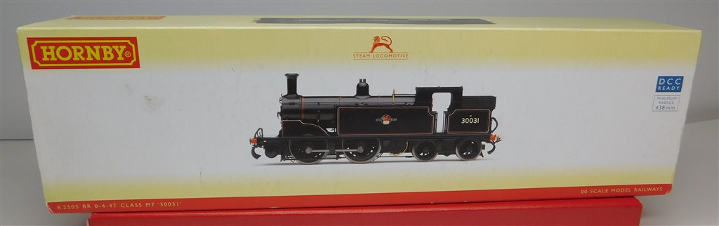 A Hornby R2505 BR ex LSWR M7 number 30031, bouncy jerky runner, doesn't start everytime without a tap, cause needs investigating and fixing, would benefit from a thorough electrical clean, body in fair condition, supplied in the original box, sold as a project needing work!
