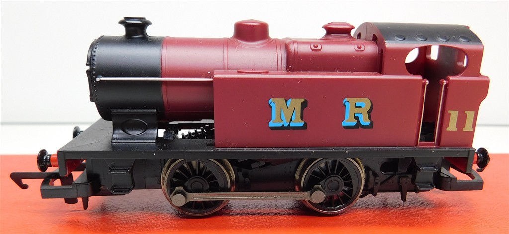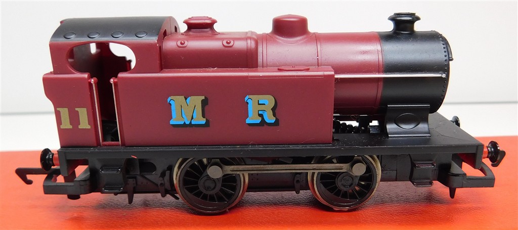 A Hornby MR 0-4-0T steam loco number 11, clattery runner, cause needs investigating and fixing, would benefit from a thorough electrical clean, loose bodyshell, body in fair condition, supplied in an incorrect original box, sold as a project needing work!