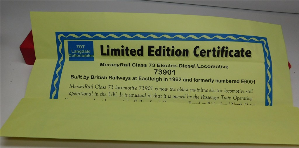 A Lima 204770 BR Merseyrail livery class 73 electro-diesel 73 901, good runner, in very good condition, supplied in the original box with certificate
