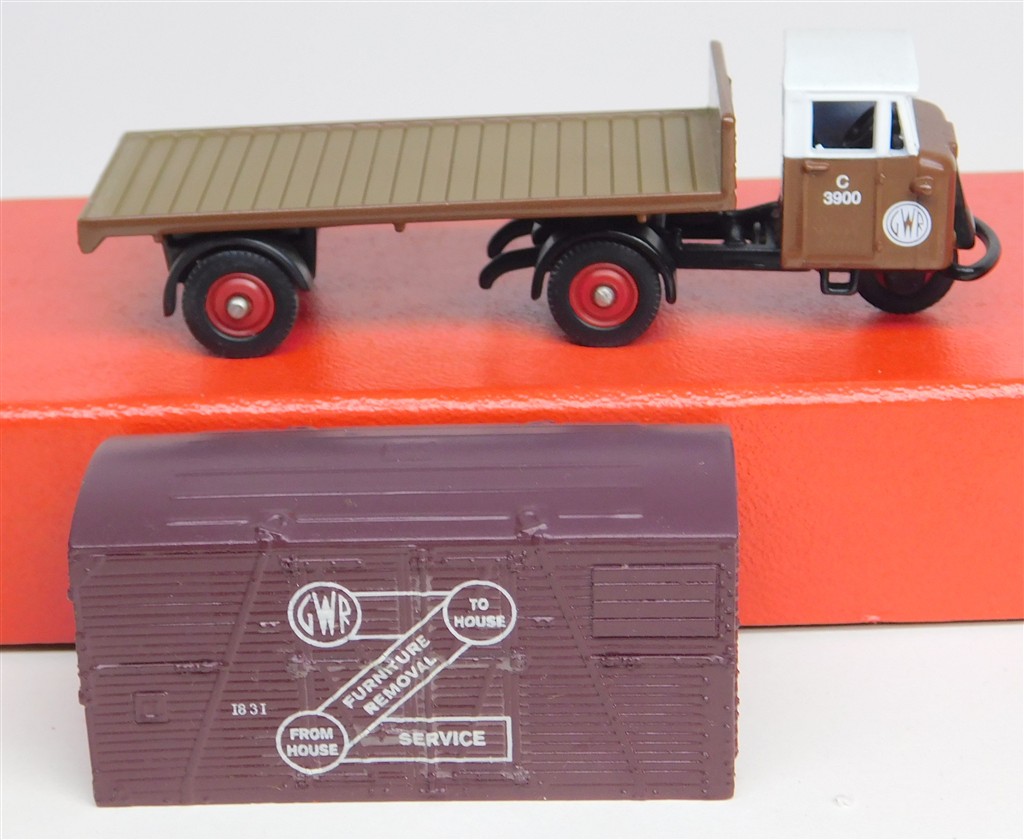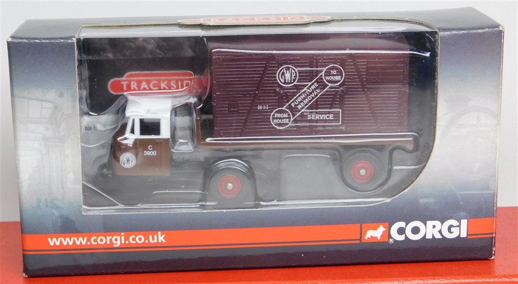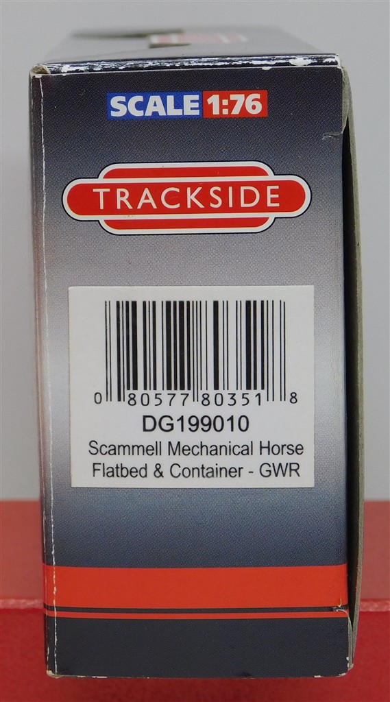 A Corgi Trackside DG199010 Scammell Mechanical Horse Flatbed and Container - GWR, in very good condition, some sun fading to the outer packaging,
