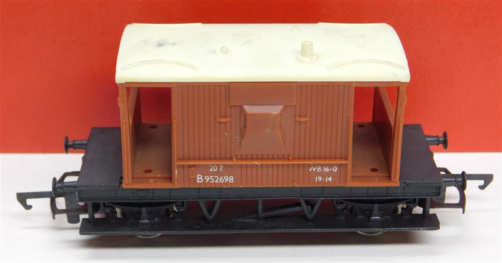 A Tri-ang Hornby BR brake van B952698, discoloured roof, plastic chassis with plastic wheels on pin-point axles, in good condition, no original box.