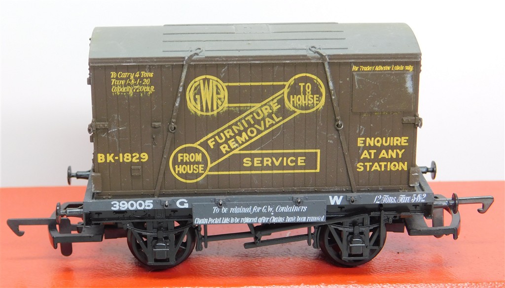 An Airfix container wagon number 39006 with container, in fair condition, no original box