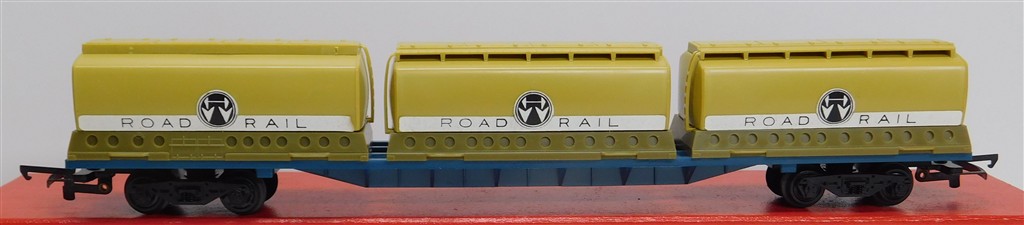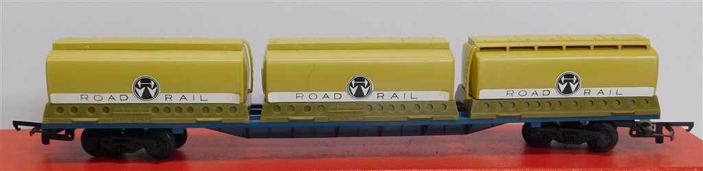 00 Wagons: Tri-ang Hornby R637 Freightliner container wagon with 3 Harold Wood tank containers