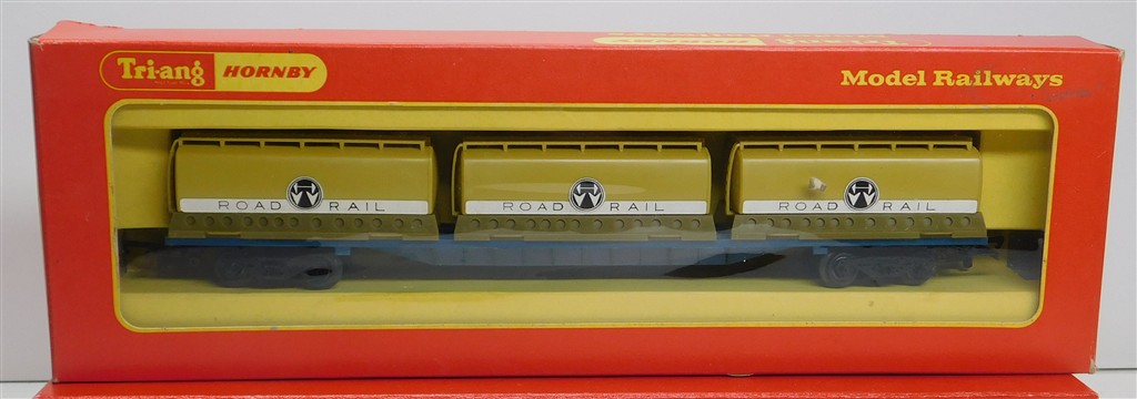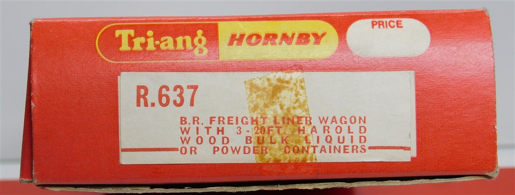 A Tri-ang Hornby R637 Freightliner container wagon with 3 Harold Wood tank containers, in good condition, supplied in the original box.