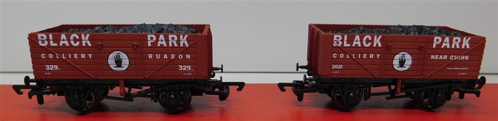 00 Wagons: Dapol B377 Pair of Black Park of Ruabon/Chirk 7 plank open wagons number 2021 and 329