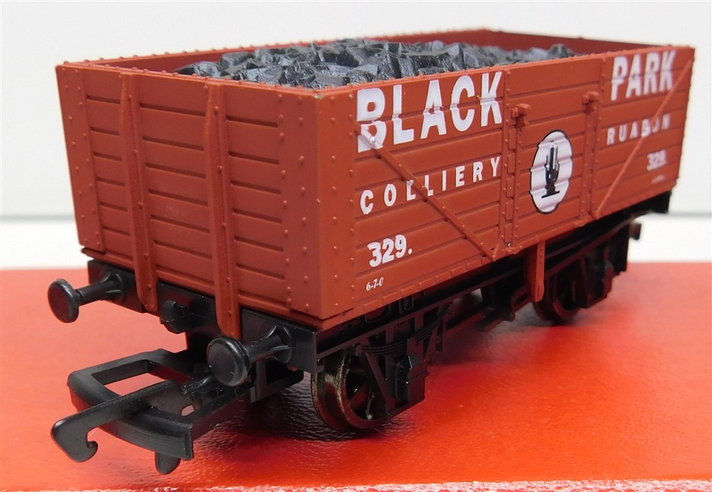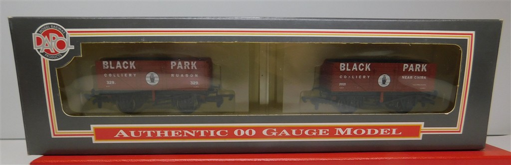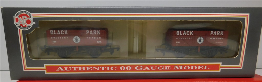 A Dapol B377 Pair of Black Park of Ruabon/Chirk 7 plank open wagons number 2021 and 329, in very good condition, supplied in the original box
