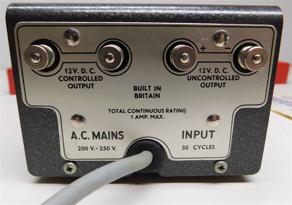 A vintage 1960s production Tri-ang P4.5 Power Controller, untested, in good clean cosmetic condition, supplied in the original box with instructions. Please note that this controller is sold as a display object only for collectors and that if it is to be used it will need to be tested and possibly fixed as it does not meet current electrical safety requirements. We have not tested this controller at all.