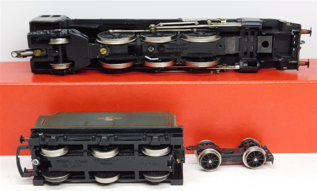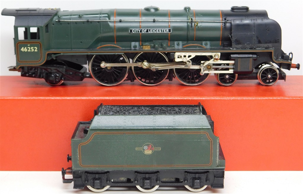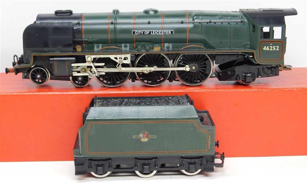 A Hornby tender drive BR City of Leicester, runs but needs a thorough electrical clean and lubrication, loco body fixings need attention, incorrect front bogie screw fitted, in fair cosmetic condition, no original box, sold as a project needing work