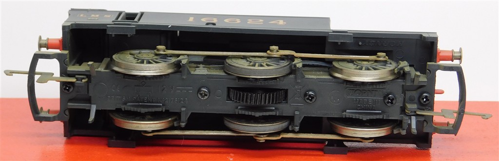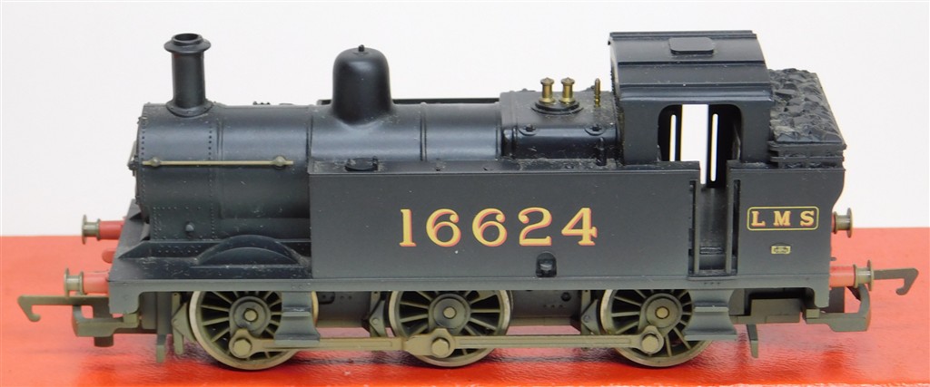 A Hornby R2469 LMS Jinty steam loco number 16624, good runner, loose bodyshell as the front lugs on the chassis are broken off otherwise in good condition, supplied in the original box