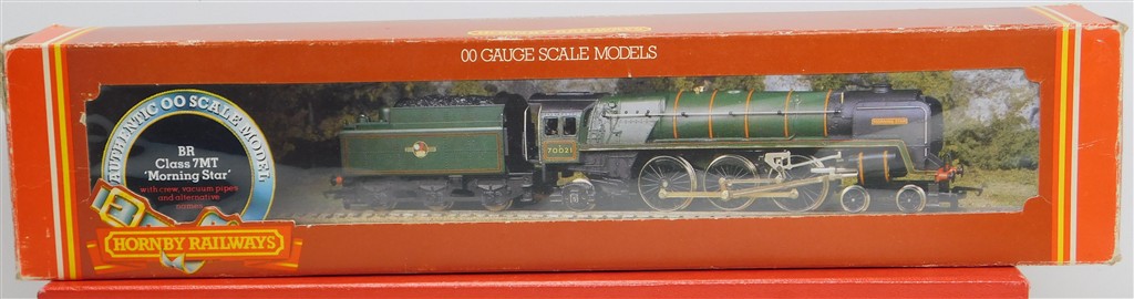 A Hornby R033 tender drive BR Britannia steam loco number 70021 Morning Star, good runner, in good clean condition, supplied in the original box with unopened crew pack.