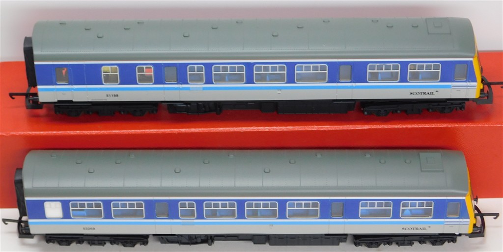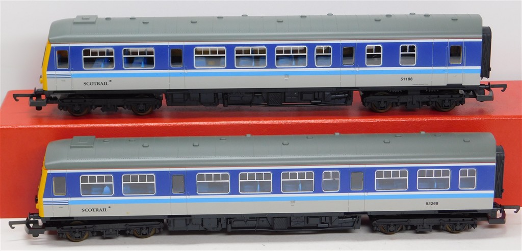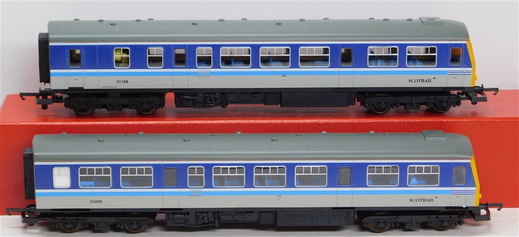 A Lima 149814 BR Scotrail livery class 101 2 car DMU number 53268+51188, good runner, in very good condition, supplied in the original box with instructions.