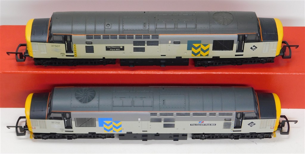 00 Diesels & Electrics: Lima L204922 Pair of Trainload livery class 37 diesel locos 37 512 Cardiff Rod Mill and 37 507 Hartlepool Pipe Mill (repainted), good runners