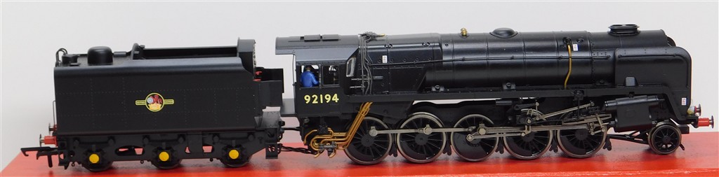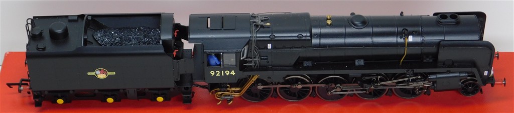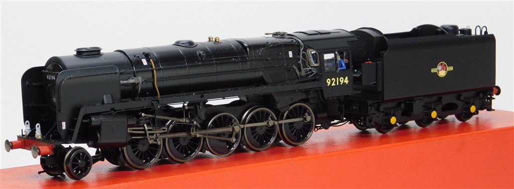 A Hornby R3987 BR 9F steam loco number 92194, good runner, with small added details including dummy lamps with a few glue spots otherwise in very good condition, supplied in the original box