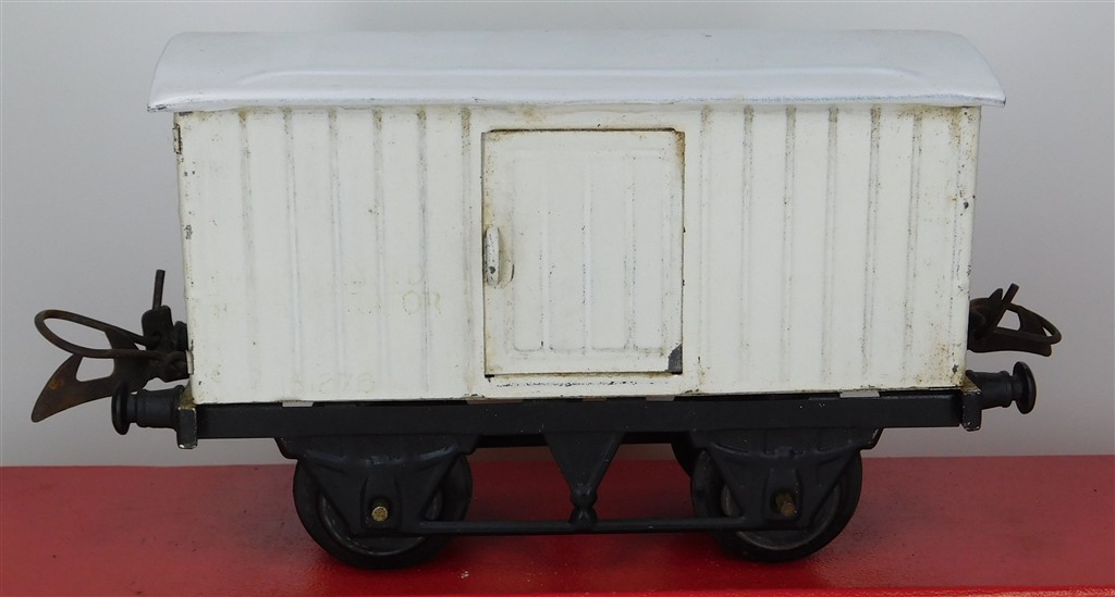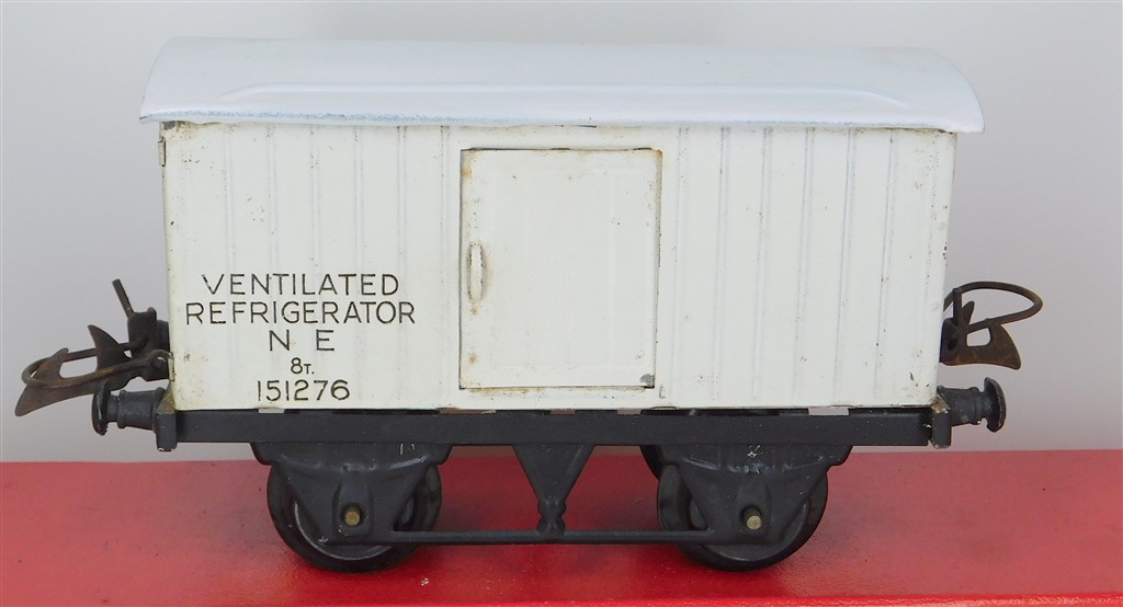 A playworn Hornby O gauge NE ventilated refrigerator van, lettering one side only, no original box