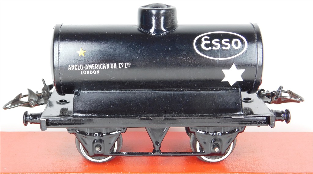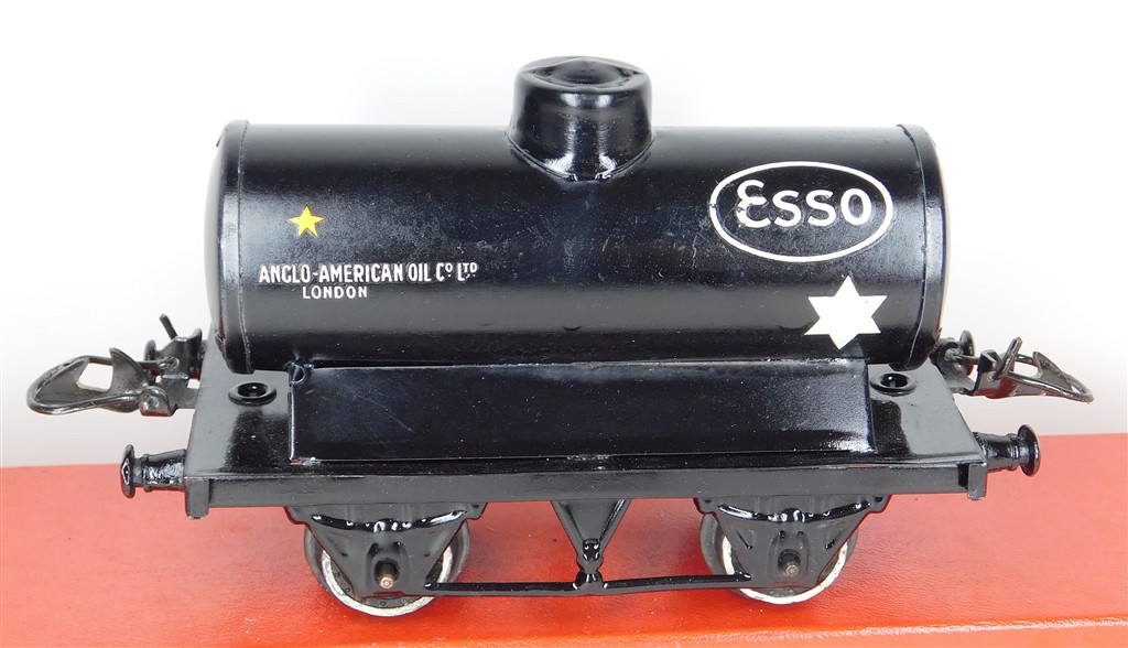 British 0 Gauge : Repainted Hornby O gauge Esso Anglo-American Oil tank wagon, black