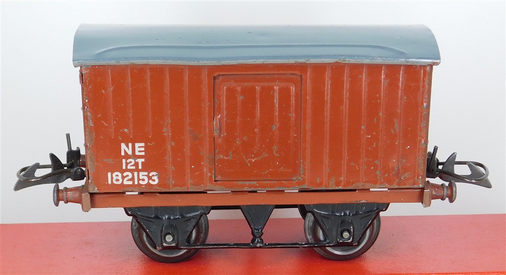 A playworn Hornby O gauge NE van 182153, type 3 chassis, no original box