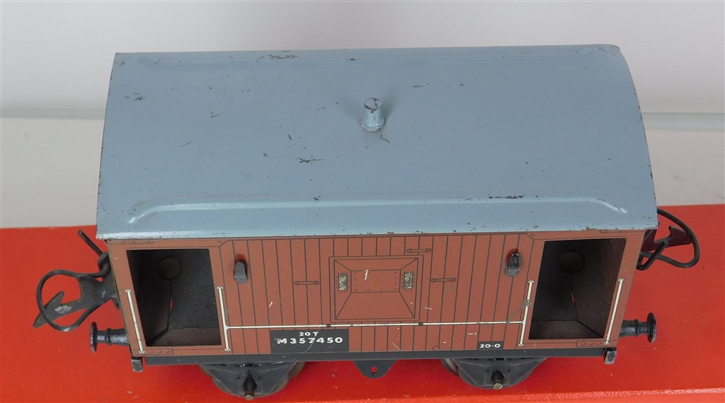 A playworn Hornby O gauge No.50 BR brake van M357450, no original box