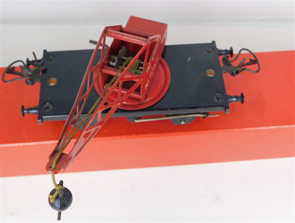A playworn Hornby O gauge No.50 BR crane wagon, type 4 chassis, no original box