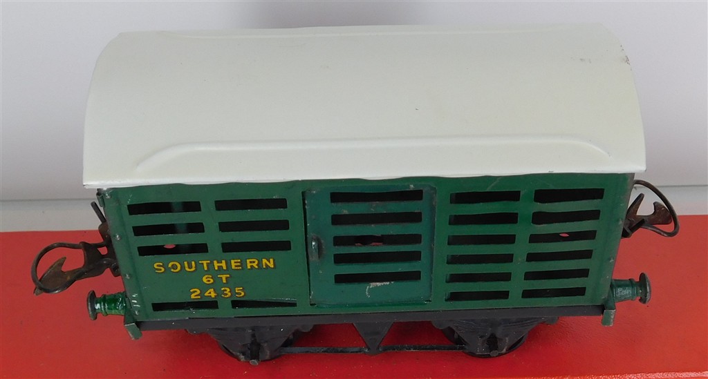British 0 Gauge : Hornby O gauge Southern green milk traffic van, type 3 chassis, black solebar