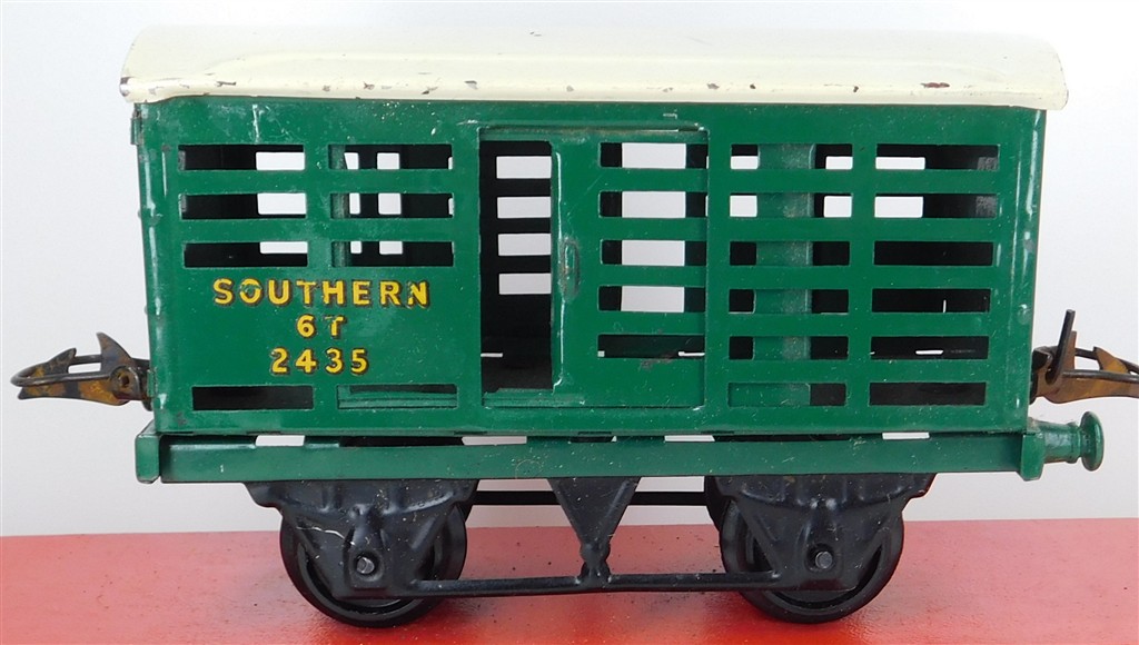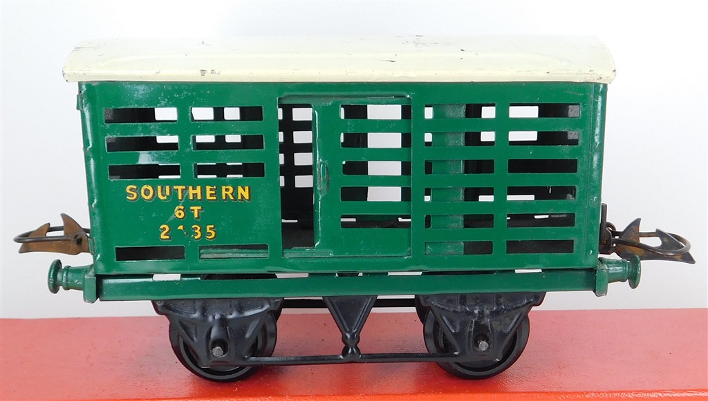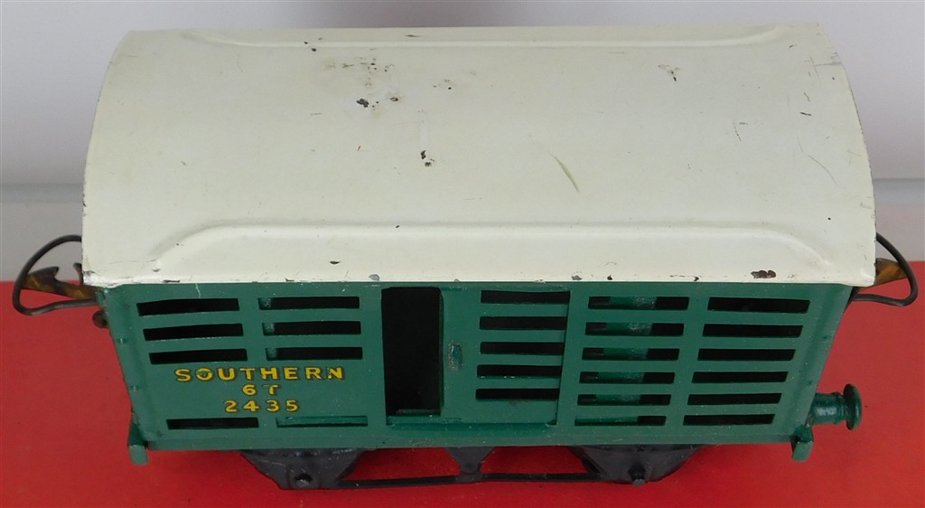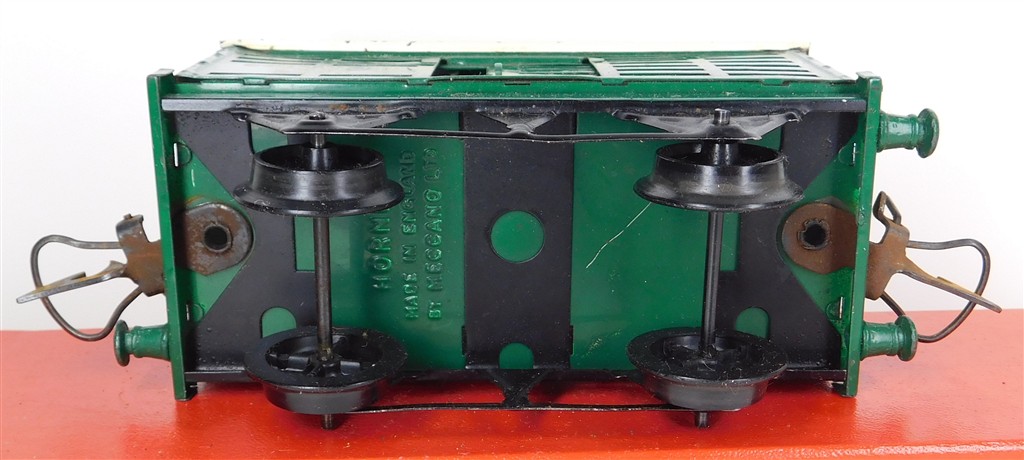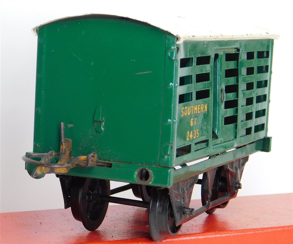 British 0 Gauge : Hornby O gauge Southern green milk traffic van, type 3 chassis, green solebar, missing one buffer