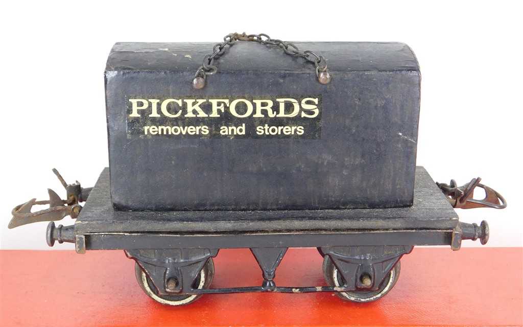 British 0 Gauge : Homemade Pickfords container wagon on Hornby O gauge chassis