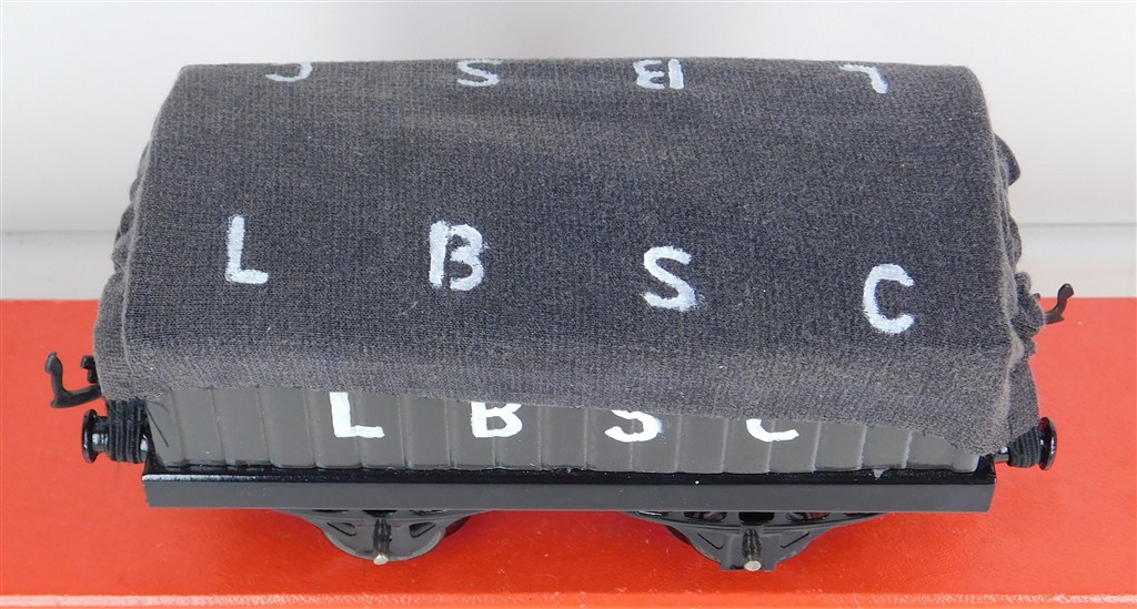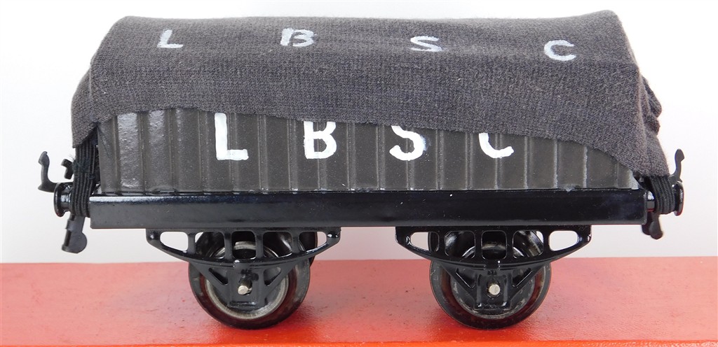 British 0 Gauge : Repainted Hornby O gauge LBSC open wagon with LBSC tarpaulin, type 2 chassis