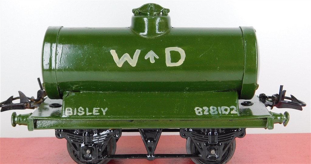 British 0 Gauge : Repainted Hornby O gauge WD (War Department) tank wagon, type 3 chassis