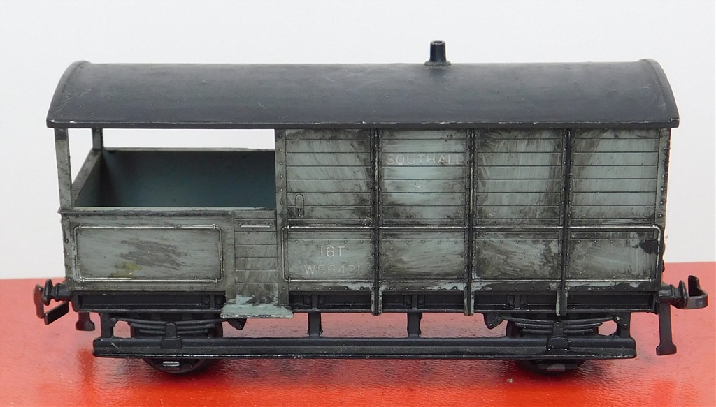 A weathered Hornby Dublo 2 or 3 rail Toad brake van number W56421, added dummy tail light, in good condition, no original box