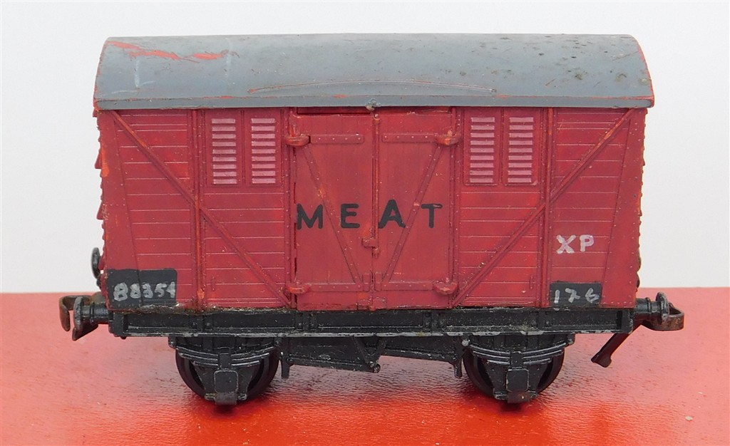Hornby Dublo: Weathered Airfix Meat Van on Hornby Dublo 2 or 3 rail chassis