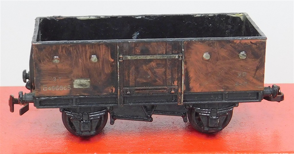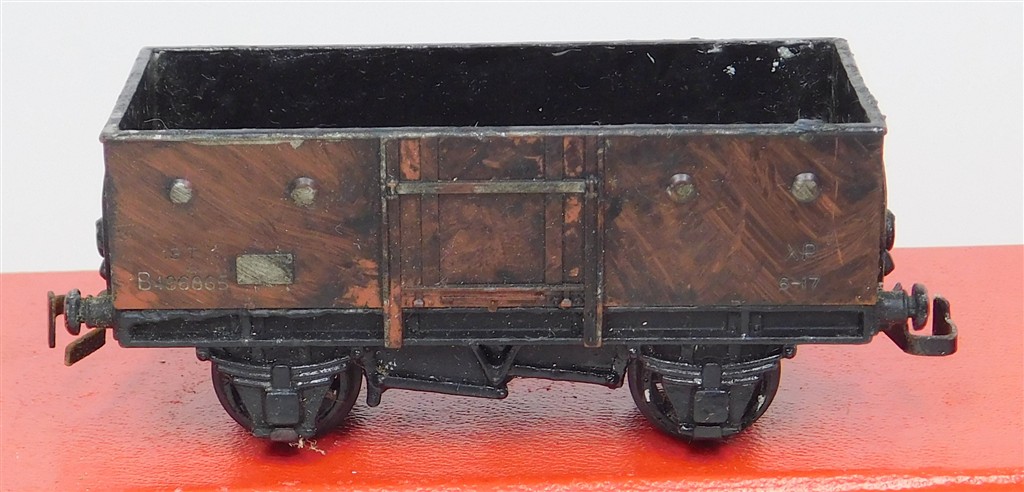 A weathered Hornby Dublo 2 or 3 rail steel open wagon number B486865, in fair condition, no original box