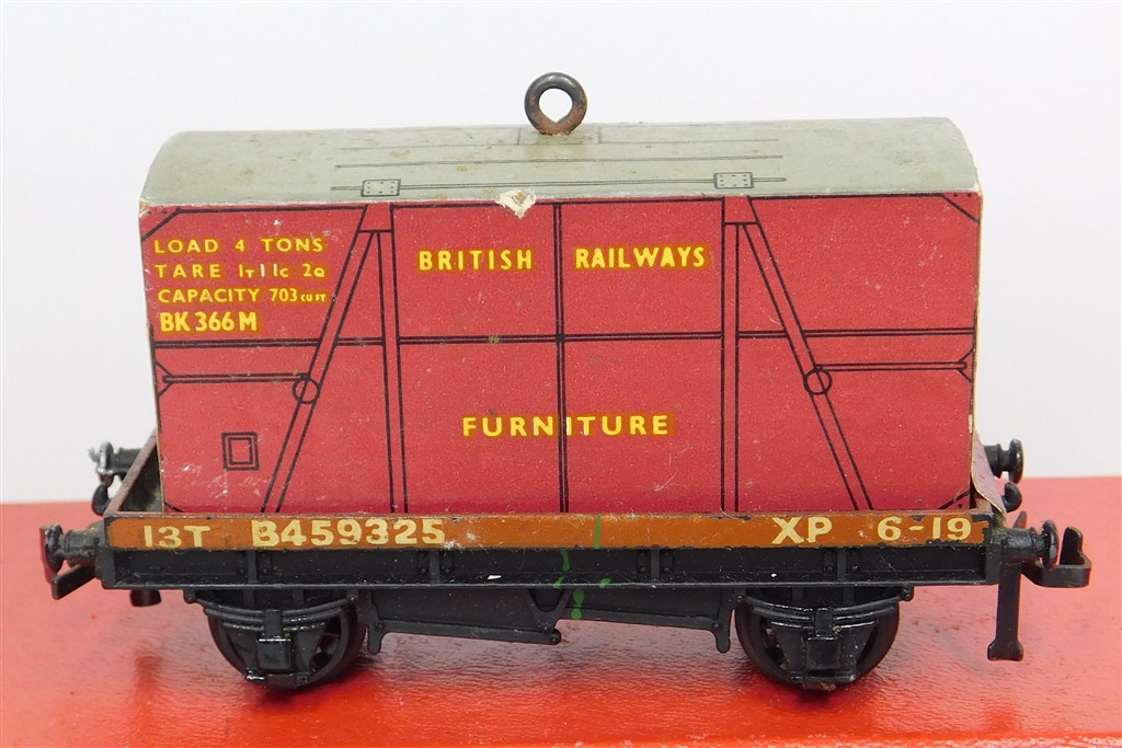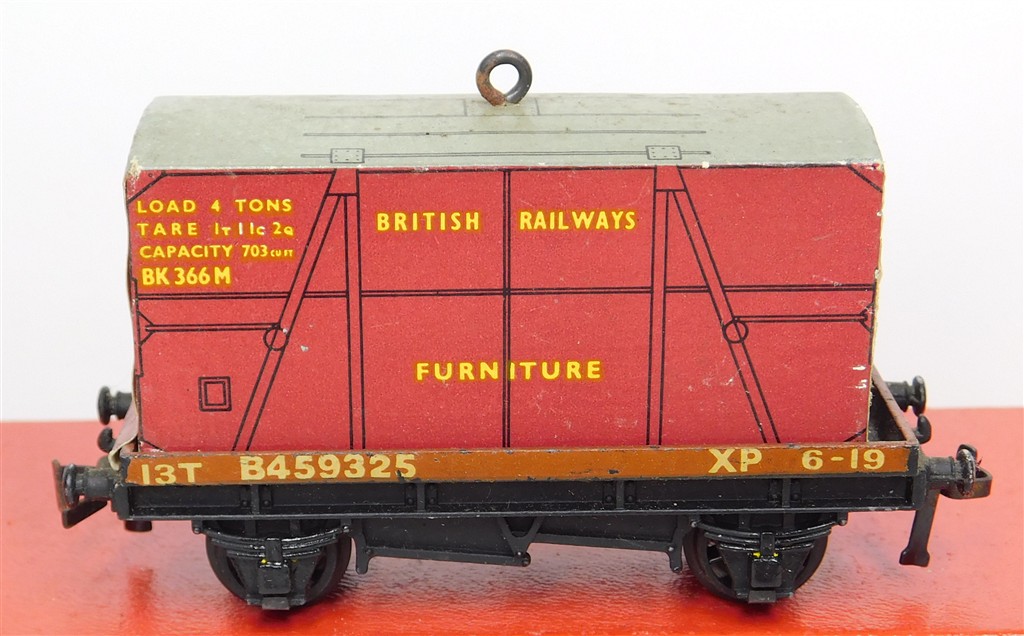 Hornby Dublo: Hornby Dublo 2 or 3 rail conflat wagon with Furniture container