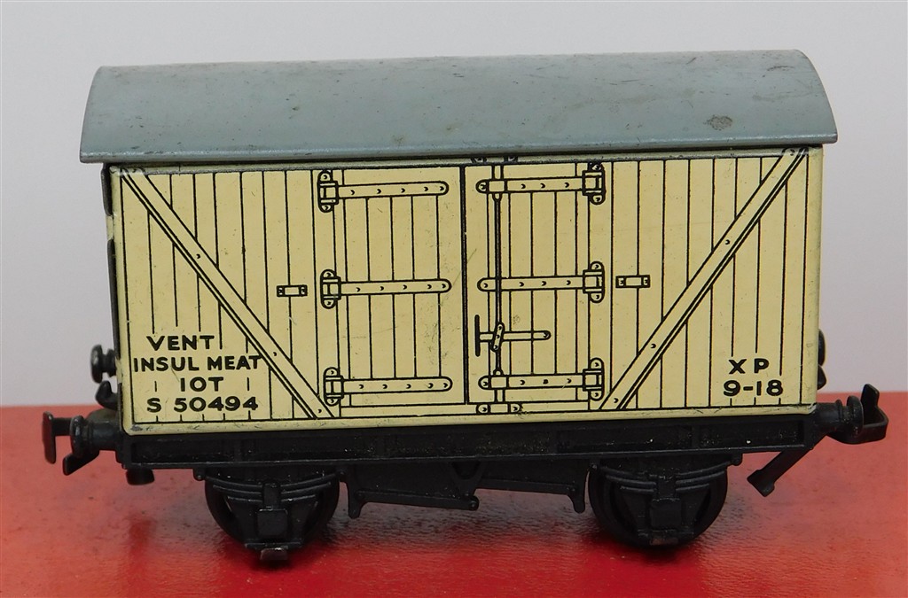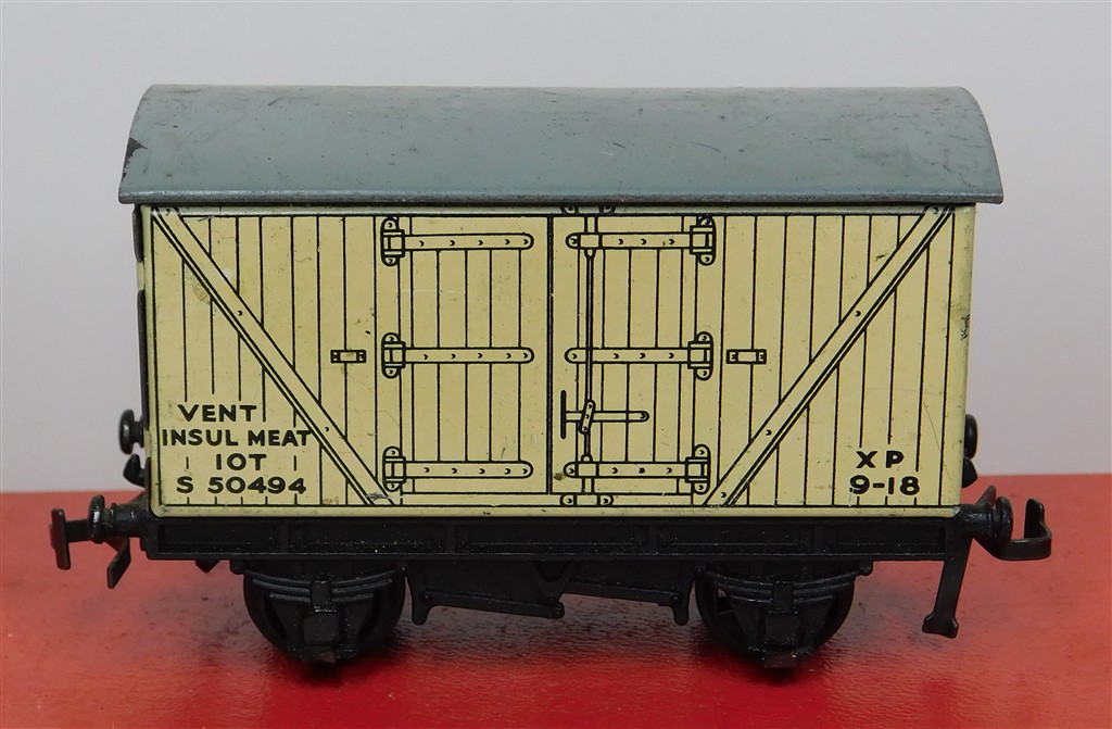 A Hornby Dublo 3 rail tinplate Insul Meat van number S50494, metal wheels, in fair condition, no original box