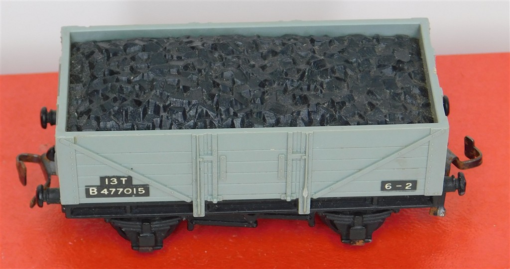 Hornby Dublo: Hornby Dublo 32075 2 or 3 rail 5 plank open wagon with coal load number B477015