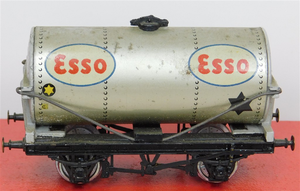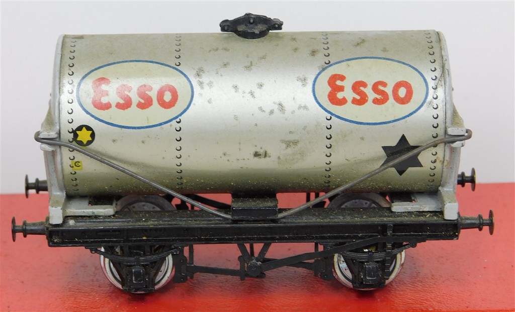 A Hornby Dublo 2 or 3 rail Esso tank wagon, replacement chassis fitted, no couplings, in fair condition, no original box