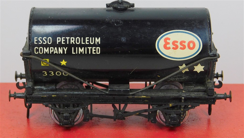 Hornby Dublo: Hornby Dublo 2 or 3 rail black Esso tank wagon, replacement chassis fitted