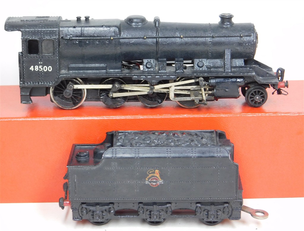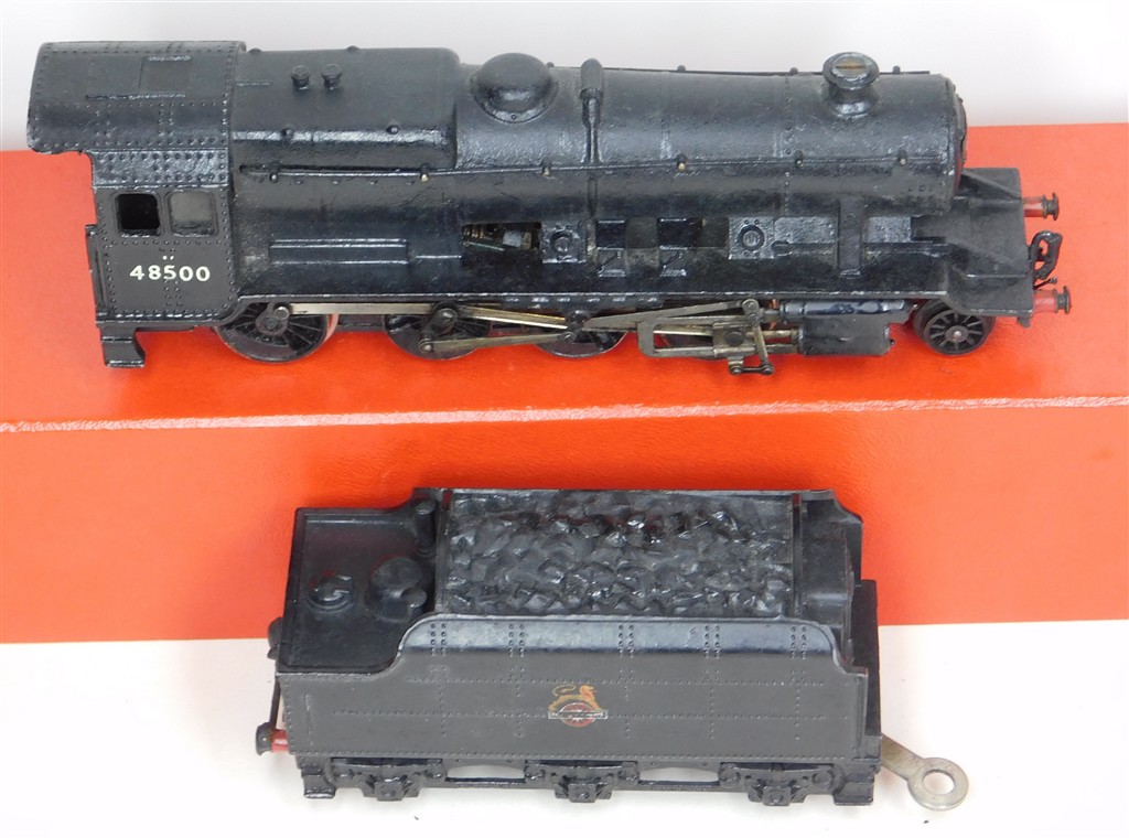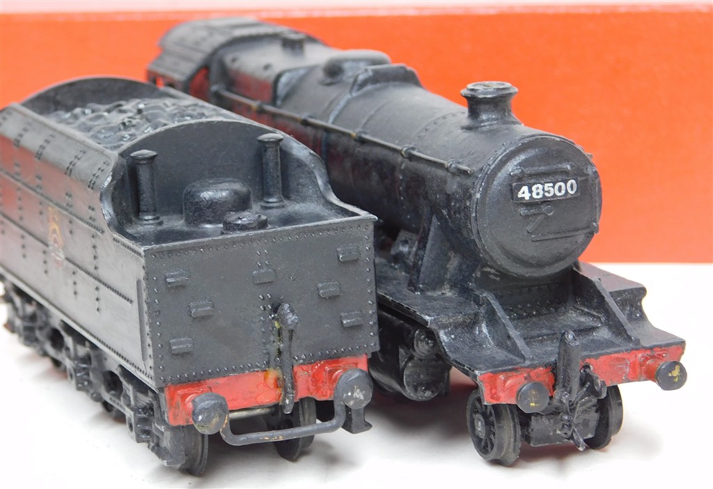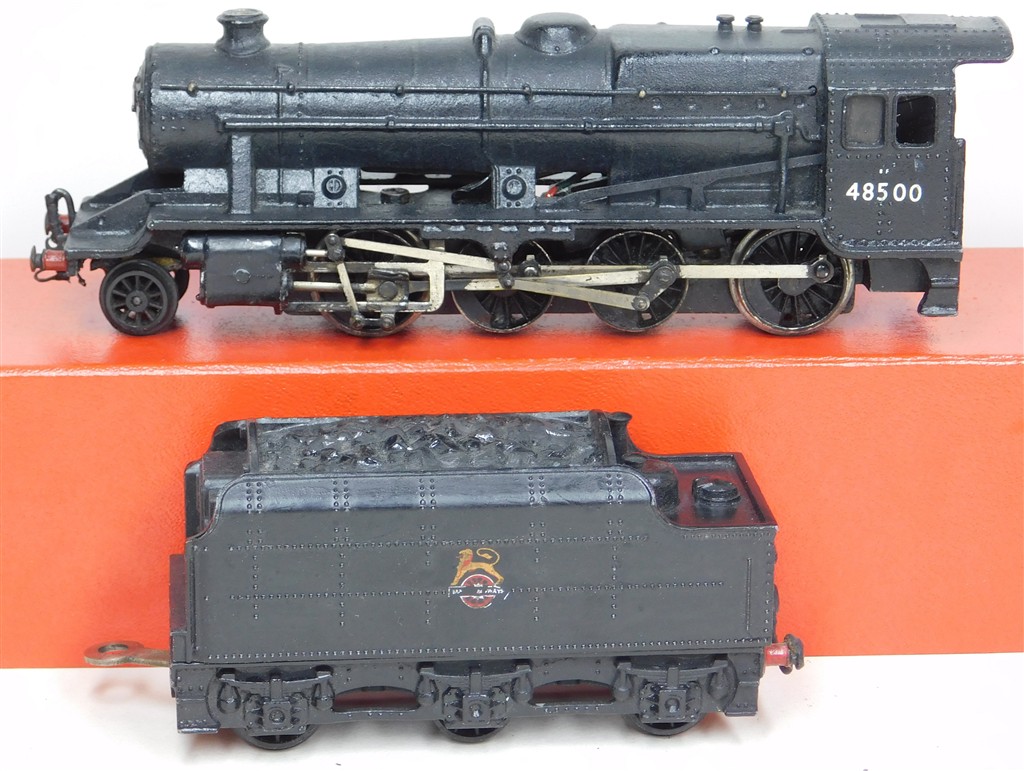 A Hornby Dublo repainted 2 rail 8F number 48500, reluctant runner, needs a thorough electrical clean and lubrication, repaint candidate, in fair condition, no original box, sold as a project needing work