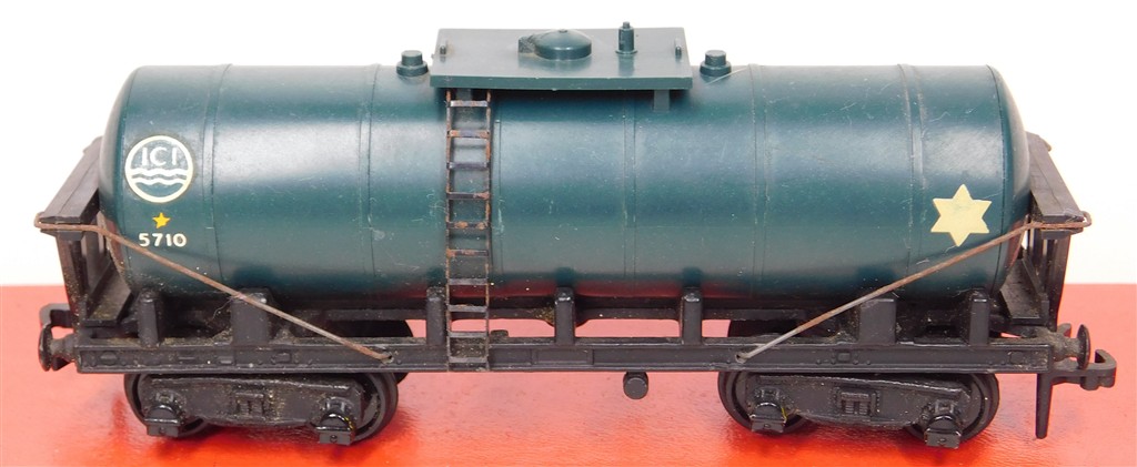 A Hornby Dublo ICI bogie tank wagon with plate bogies, in good condition, no original box