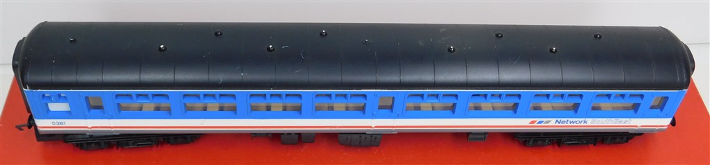 A Hornby Network South East Mk2 SO 2nd class coach number 5381 (A), marks on roof otherwise in good used condition, no original box.