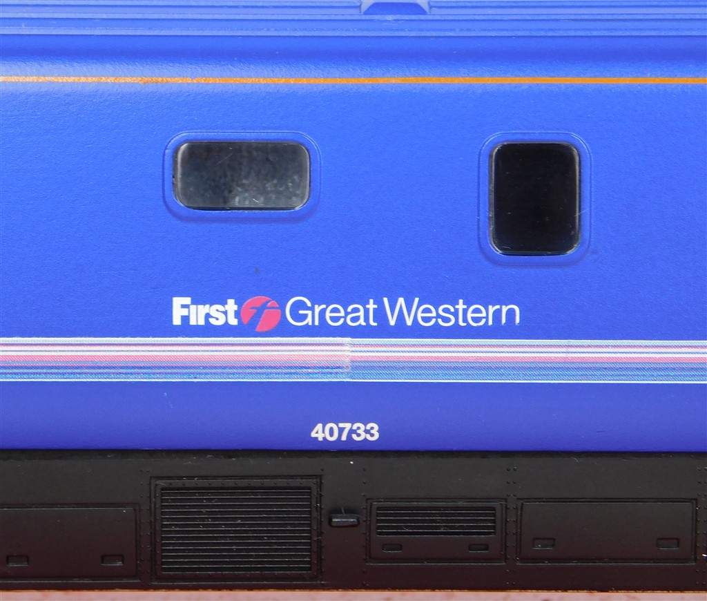 00 Coaches: Hornby scale length First Great Western Mk3 buffet coach 40733 with added weight underneath, mark on one side (A)