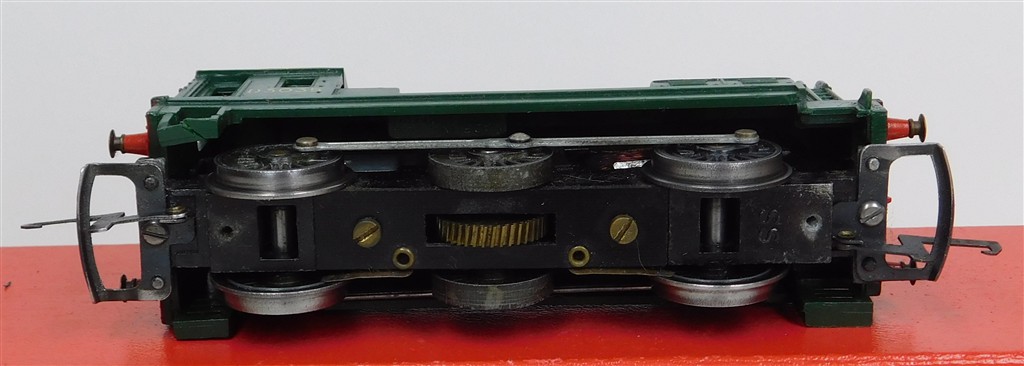 An early 1960s production BR green example of the Tri-ang diesel shunter, deep flanged solid wheels and Mark III couplings, some lettering and lining loss, strangely repainted roof, tested and in working order and good used condition, no original box. Please note this loco needs a controller capable of delivering at least 1A to run well, and doesn't like new Hornby or Peco points as it has deep thick flanged wheels.