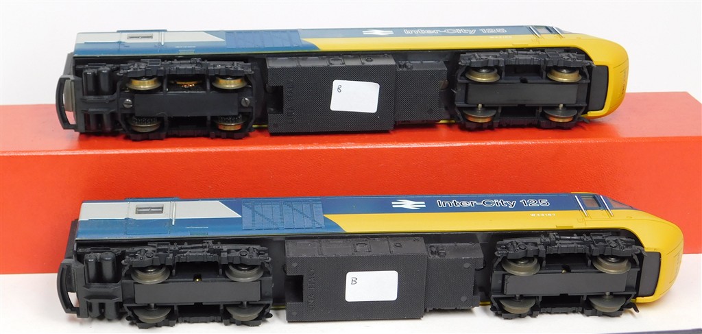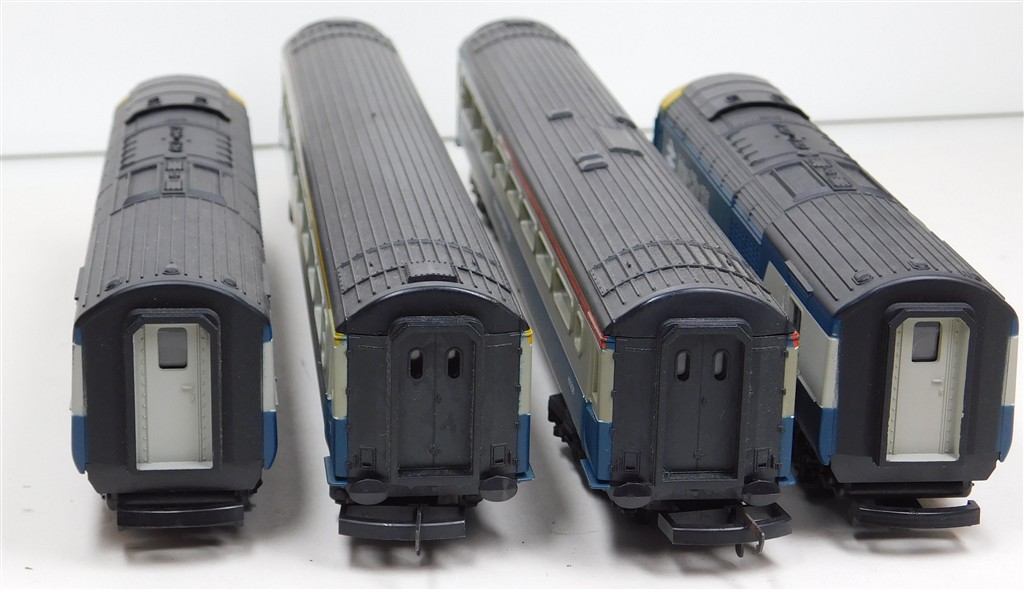 A Lima classic 4 car InterCity 125 set consisting of power car, driving trailer and 2 scale length centre coaches, tested and in working order and good condition, non-directional headlights in power car, no headlights in non-powered power car, no original box