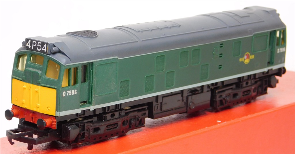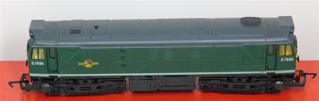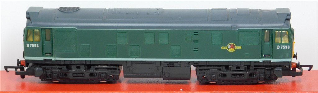A Hornby ringfield motor BR green class 25 diesel loco number D7596, good runner with working directional headcode lights, in good condition, no original box.
