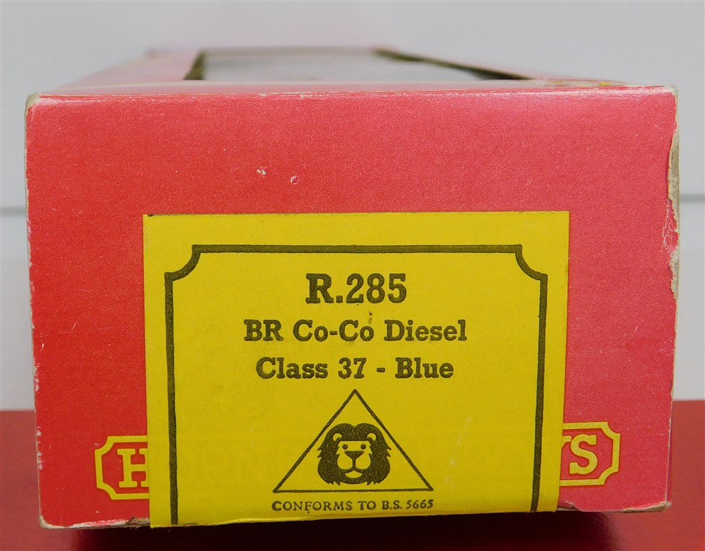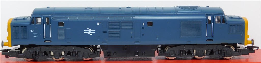 A Hornby R285 ringfield motor BR blue class 37 diesel loco unnumbered, good runner, in good condition, supplied in the original box missing the numbering transfer sheet.