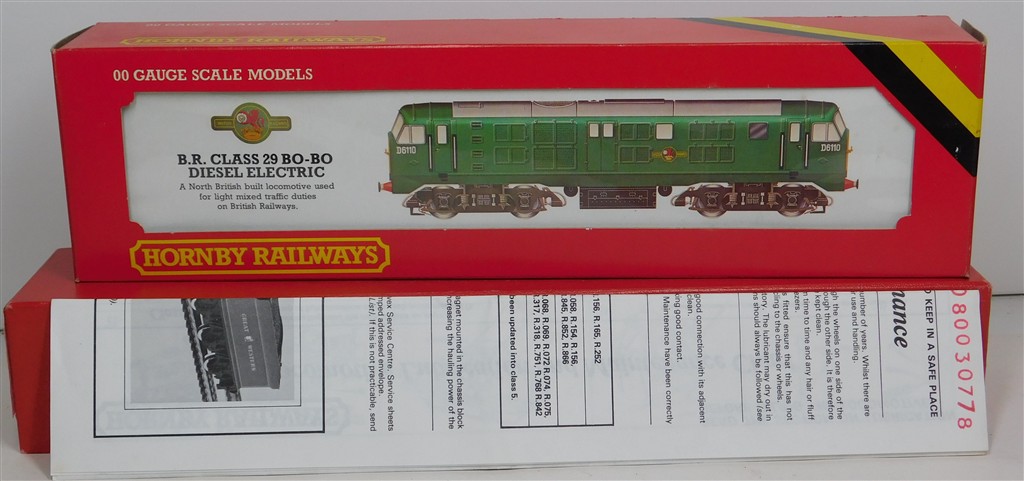 A Hornby R080 ringfield motor BR green class 29 diesel loco number D6110, good runner, in good condition, supplied in the original box