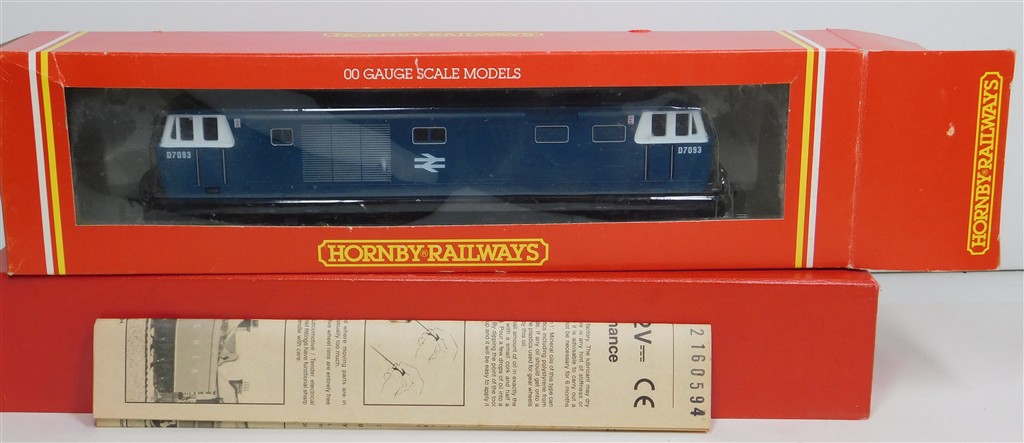 A Hornby R122 ringfield motor BR deep blue Hymek class 35 diesel loco number D7093, good runner, in good condition, supplied in the original box