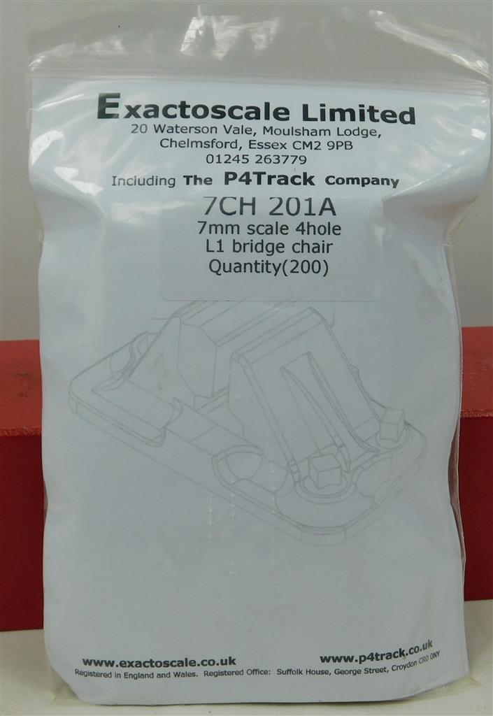 An unopened packet of Exactoscale 7CH 201A 7mm scale 4 hole L1 bridge chair, ABS (200)