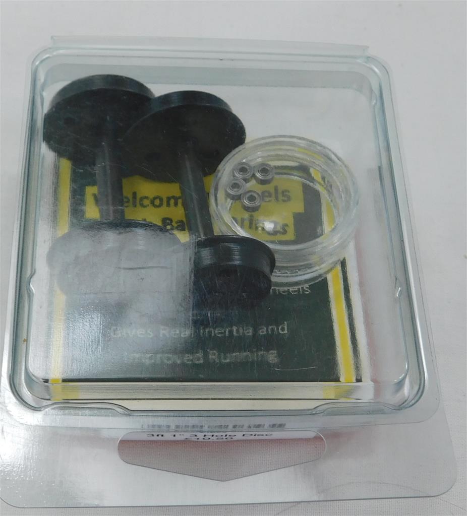 An unopened packet of Welcome Wheels Coarse Scale 0 gauge 3' 1" 3 hole disc wheels (pair)
