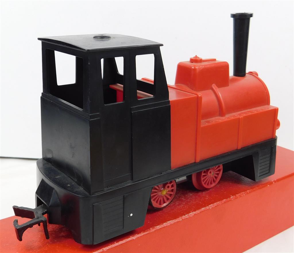 A HWN Big-Big style 0-4-0 steam loco, motor runs well, the switch and battery contacts need a good clean, note that the couplings are the mirror image of Tri-ang and will not connect to Tri-ang, also note the wheels have thick flanges and will not run through Big-Big points, no original box, made by Heinrich Wimmer of Nuremberg circa 1973