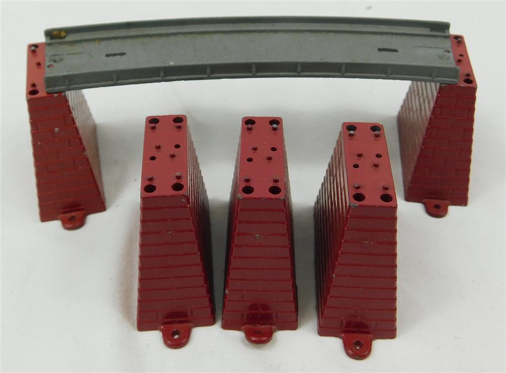 5 playworn Lone Star 000 gauge diecast high level piers and one high level base