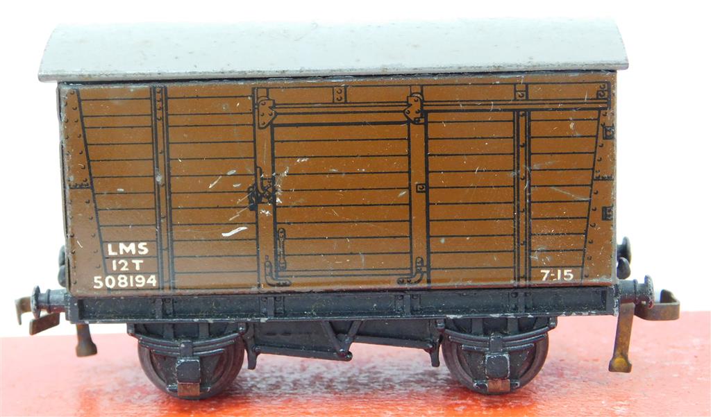 A Hornby Dublo 3 rail tinplate LMS van numbered 508194, uninsulated metal wheels fitted, in fair condition, no original box